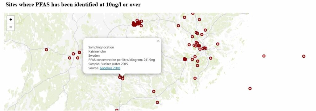 Utforska PFAS-kartan – https://www.theguardian.com/environment/2023/feb/23/revealed-scale-of-forever-chemical-pollution-across-uk-and-europe