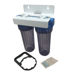 10″ Dubbel filterhus med väggfäste – ½” invändiga mässingsgängor