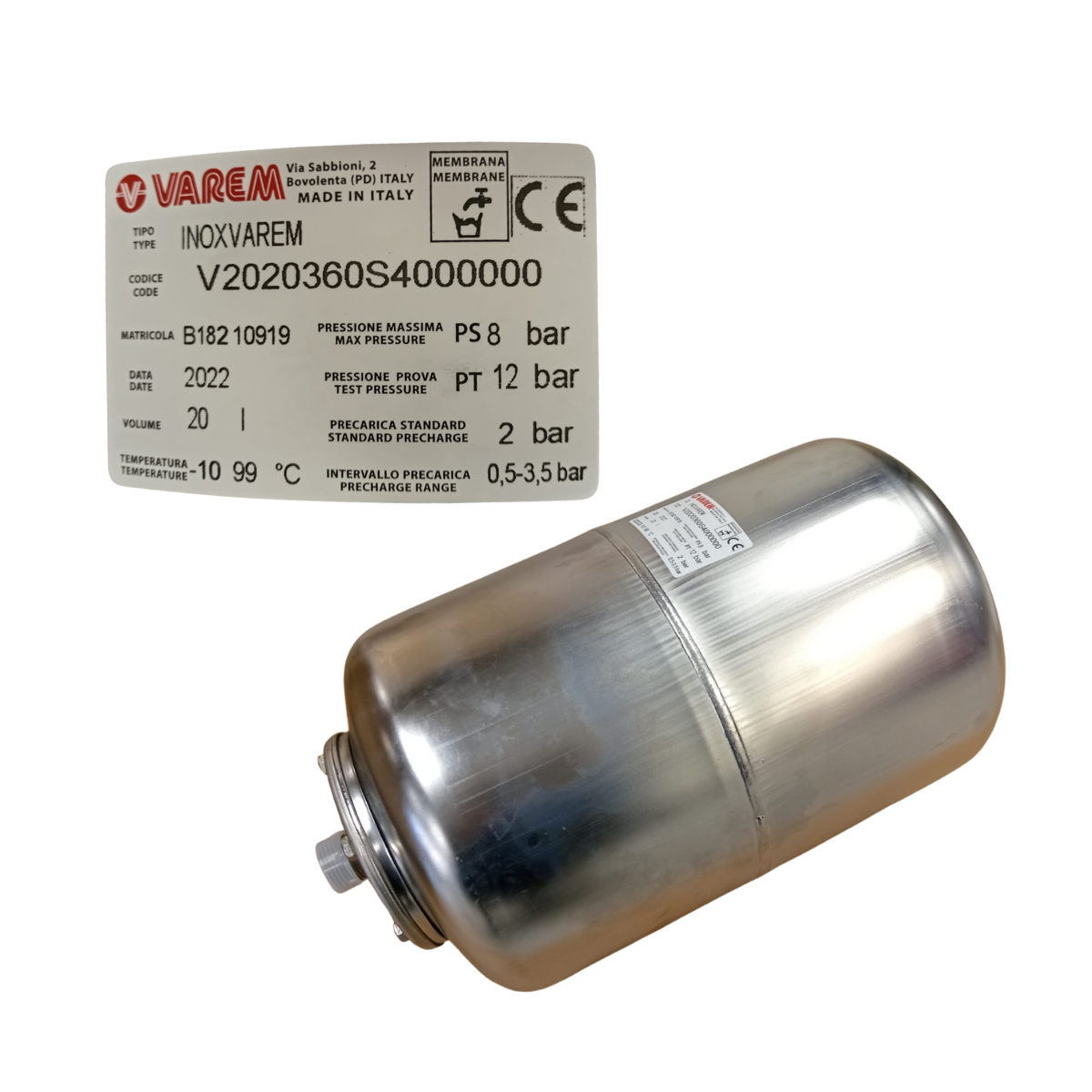 Varem Inoxvarem LS CE vertikal expansionskärl är en högkvalitativ och mångsidig lösning för olika användningsområden i rörsystem och dricksvattenanläggningar. Idealiskt för användning i tryckstegringssystem, hjälper expansionskärlet till att reglera och stabilisera vattentrycket, vilket bidrar till en effektiv drift av hela rörsystemet.