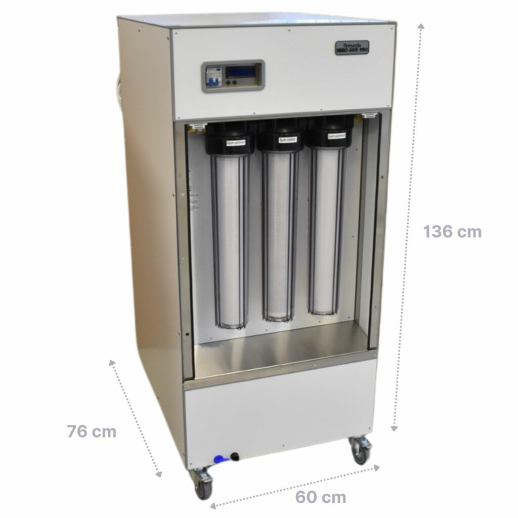NERO 600 PRO-modellen är designad för små bostadsområden, t.ex. på ö- och kustnära platser, för att betjäna fritidshus eller vattenandelslag. De patenterade teknologierna gör denna finska vattenreningsanläggning helt automatisk och kräver i princip aldrig någon stödfunktion, även när det gäller att rena problematiskt brunnsvatten med höga halter av järn, salt och mangan. Enheten är även lämplig för filtrering av blågröna alggifter.