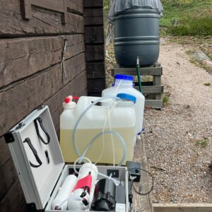 Watteri är en bärbar vattenrenare baserad på omvänd osmos-teknik, som får sin kraft från powerbanks för att ladda mobiltelefoner. Observera att den faktiska strömkällan inte ingår i leveransen av enheten. Du kan köpa den separat från vår webbutik eller annanstans. Kontrollera att din powerbank uppfyller systemets krav. Enheten är självpumpande, så du sätter bara sugslangen i vattnet som ska rengöras, ger ström till enheten från din powerbank och slår på den. Enheten kan också användas med nät- och solenergi genom att använda en snabbladdande USB-C mobiltelefonladdare.